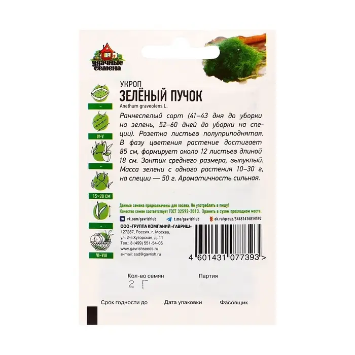 Семена Укроп «Зеленый пучок», 2 г, «Удачные семена. Хит»
