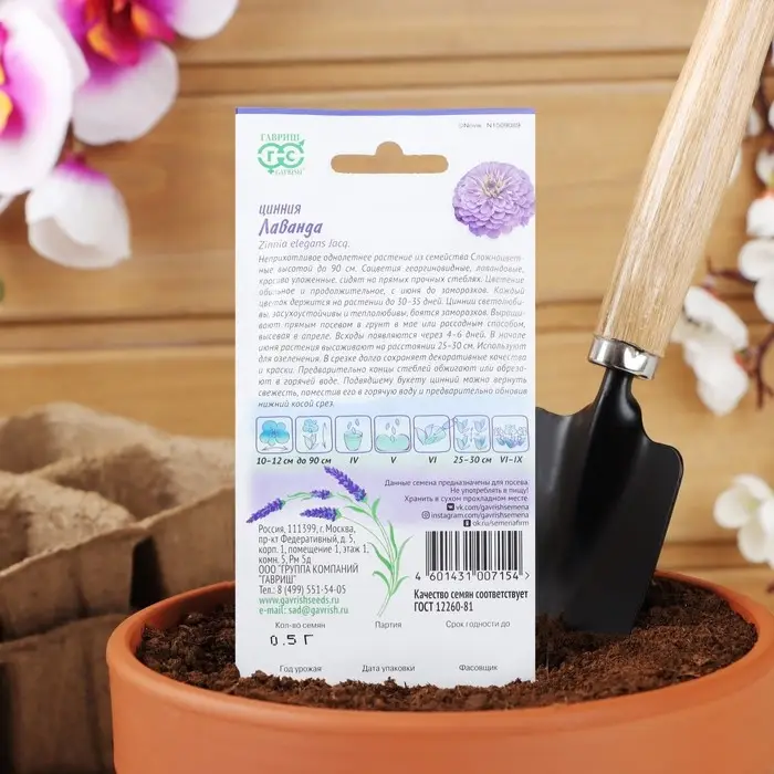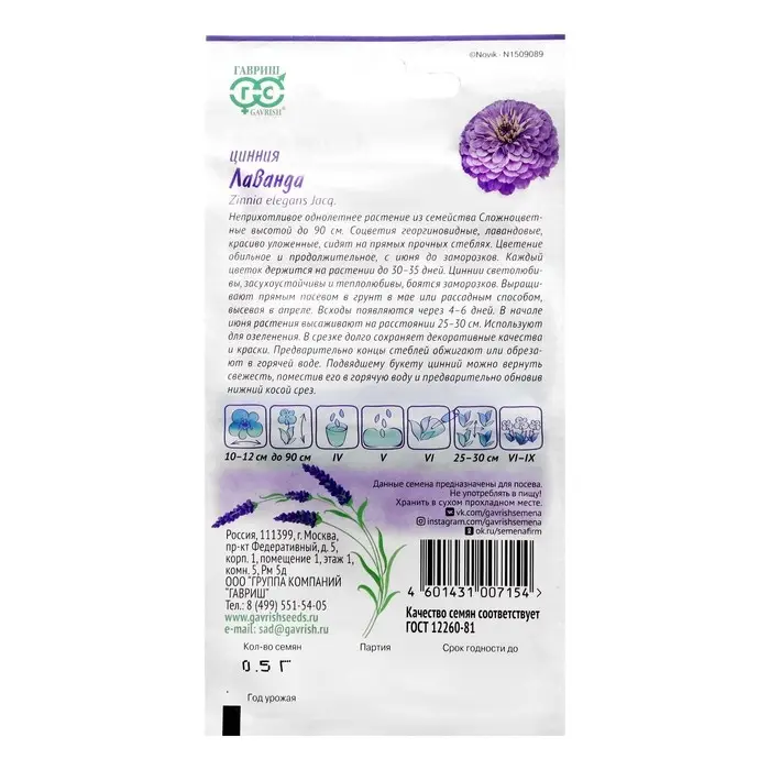 Семена цветов Цинния Лаванда "Лавандовые грёзы", ц/п, 0,5 г