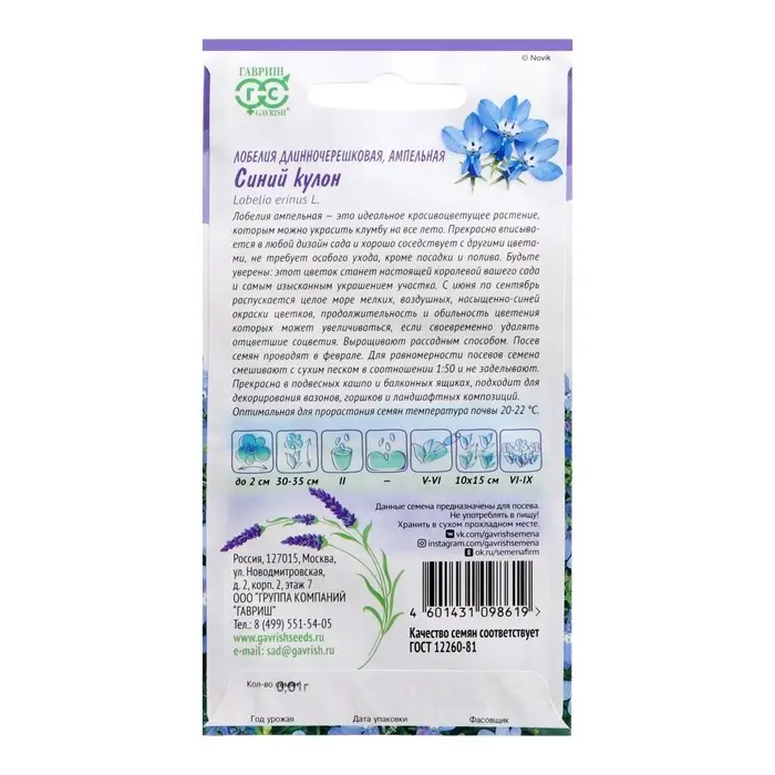 Семена цветов лобелия ампельная «Синий кулон», 0.01 г
