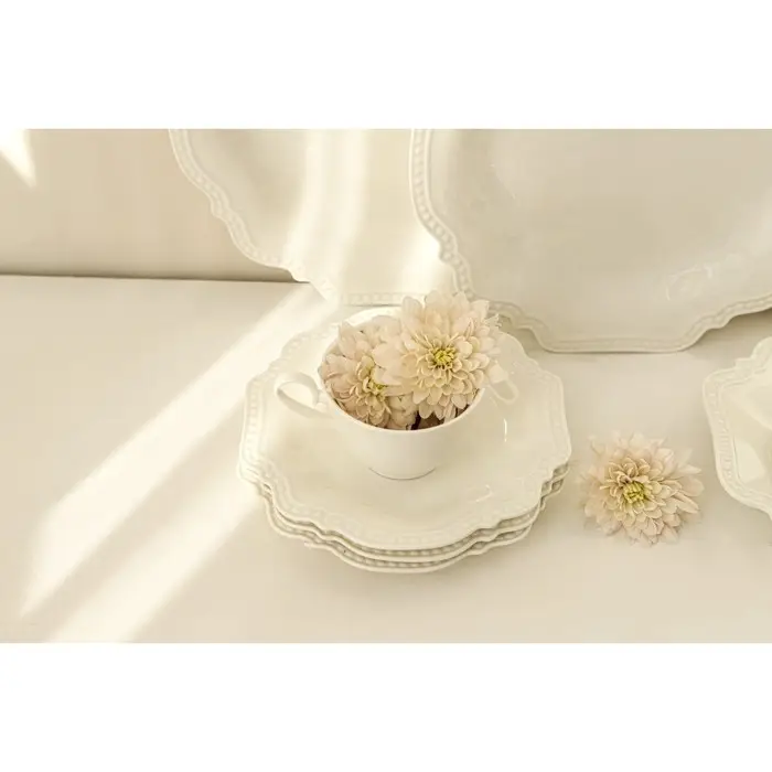 Вся серия посуды выполнена из качественного фарфора, отличается высокой прочностью, устойчива к появлению царапин и резким перепадам температур.