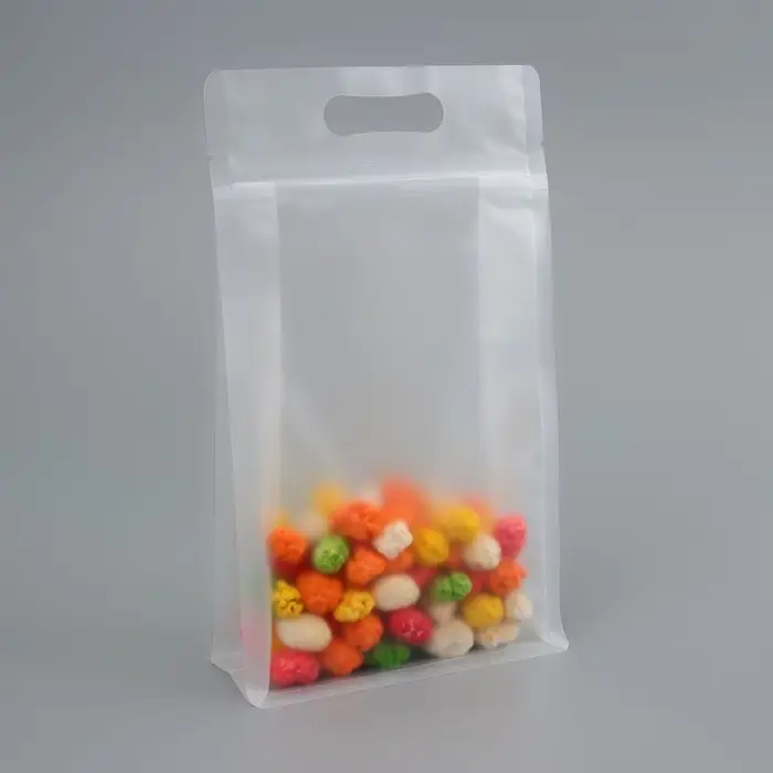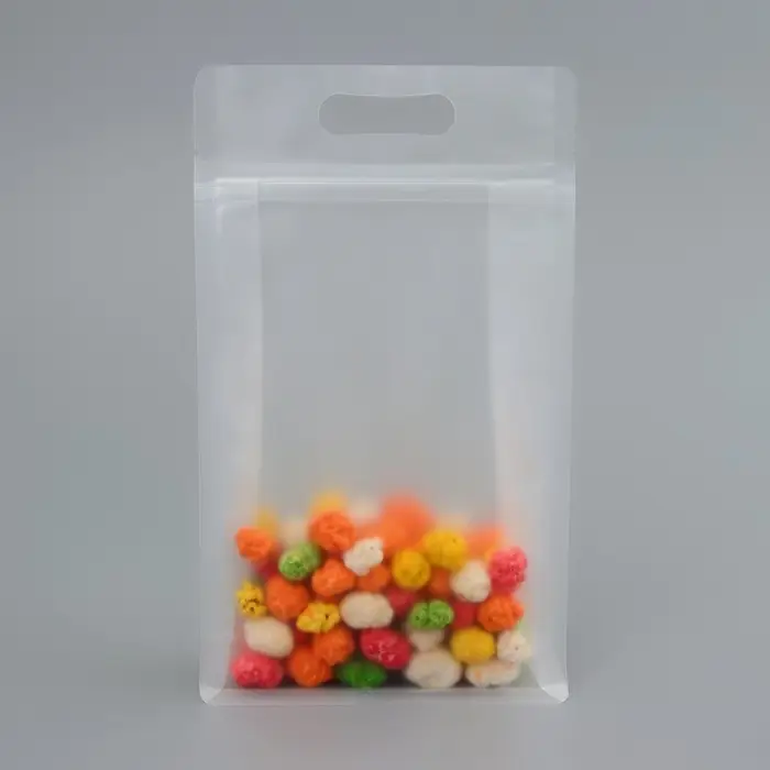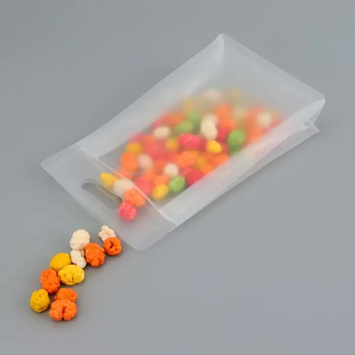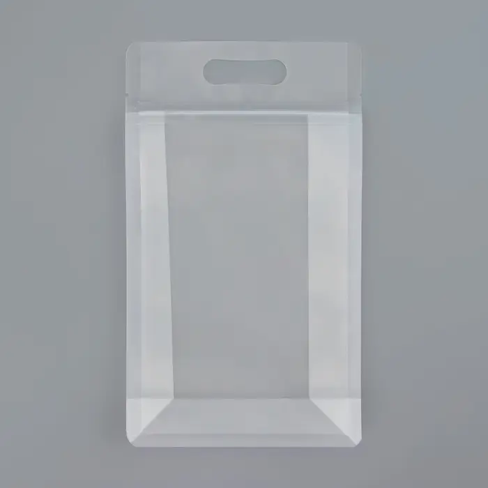 Прозрачный дой-пак с вырубной ручкой — это практичная упаковка формата 14x24 см. Матовая пленка ПВХ толщиной 100 мкм сохраняет содержимое и делает пакет удобным для переноски.