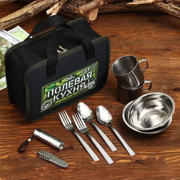 Вилка, Кружка, Ложка, Мультитул, Сумка, Тарелка, Фонарик