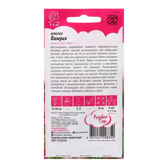 Семена Армерия "Валерия" (приморская), ц/п,0,02 г,