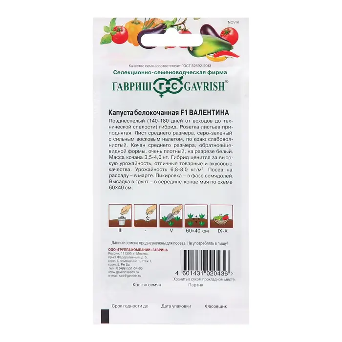 Семена Капуста белокоч. "Валентина", F1, 10 шт