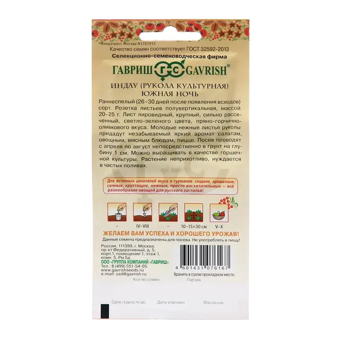 Семена Индау (Рукола) "Акрополь" культурная, скороспелая, орехово-горчичный вкус, 1 г