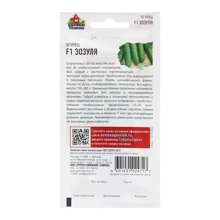 Семена Огурец "Сибирская Гирлянда" F1 скороспелый, партенокарпический, 5 шт
