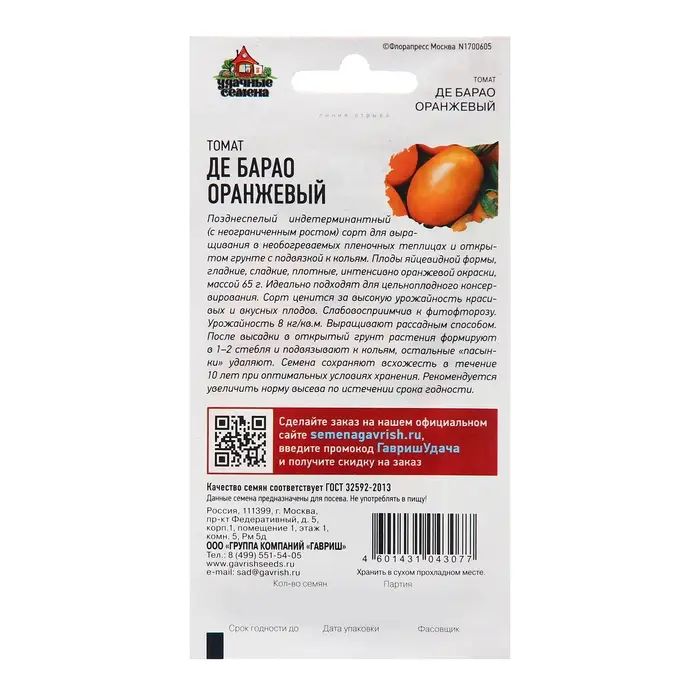 Семена томатов «Де Барао Оранжевый» позволят вам вырастить ароматные и сочные плоды, которые станут украшением любого стола. Средний срок созревания делает их подходящими для выращивания в самых разных климатических условиях, обеспечивая красивый и стабильный урожай.
