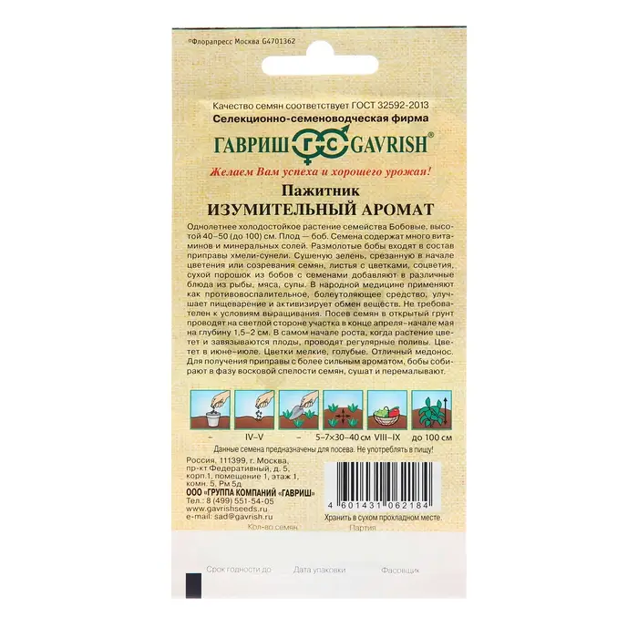 Семена Пажитник "Изумительный аромат", ц/п, голубой, 0,1 г