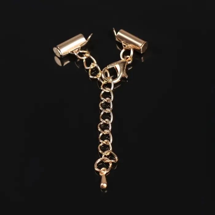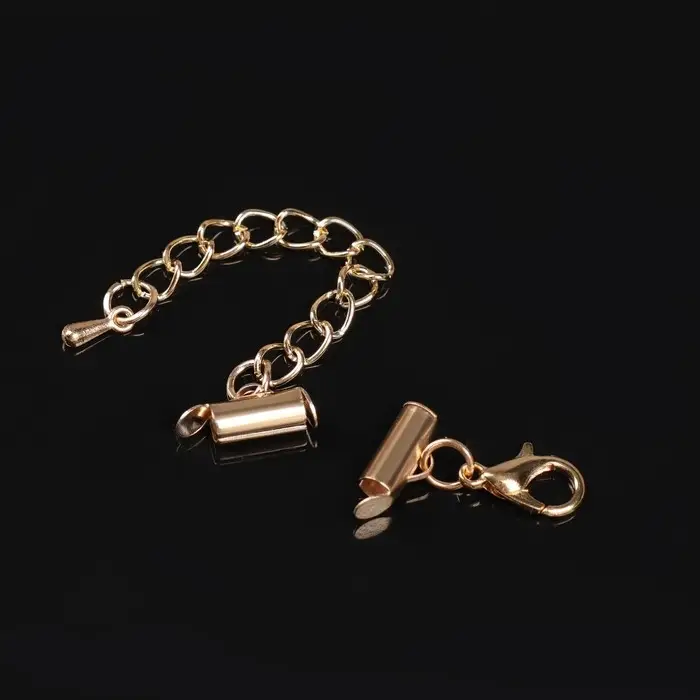 Концевик для браслета из бисера (пара) QF, 10 мм, металл, с цепочкой удлинителем, цвет золото