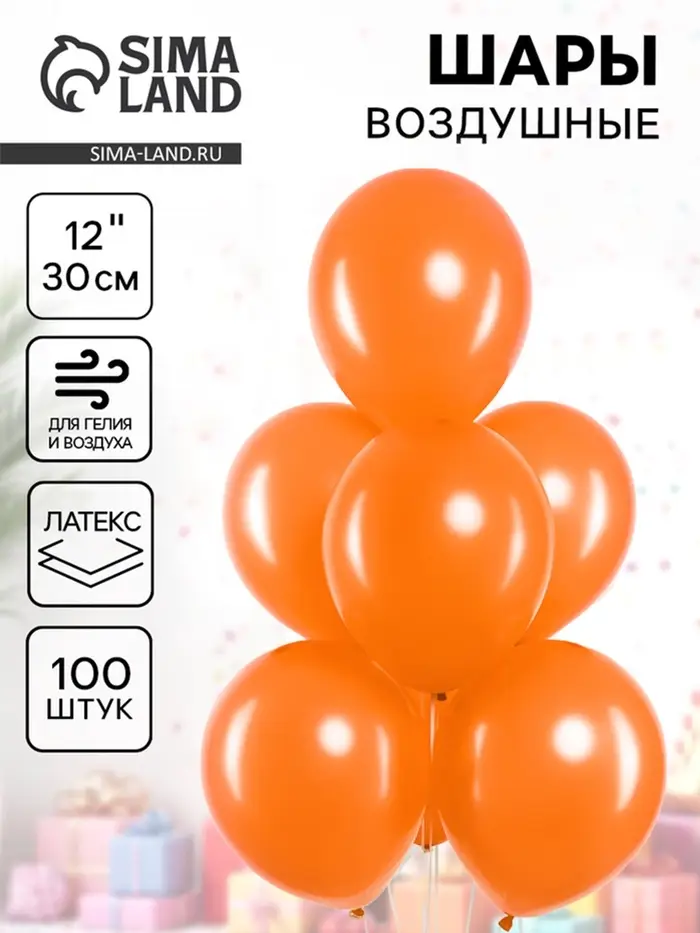 Воздушные шары латексные 12" «Оранжевый», 100 шт.