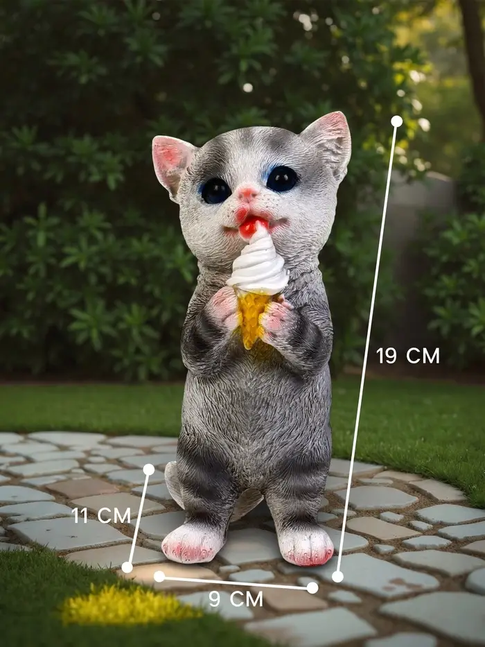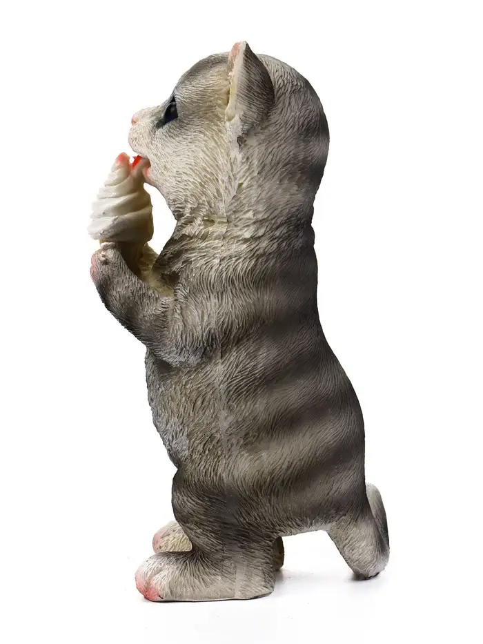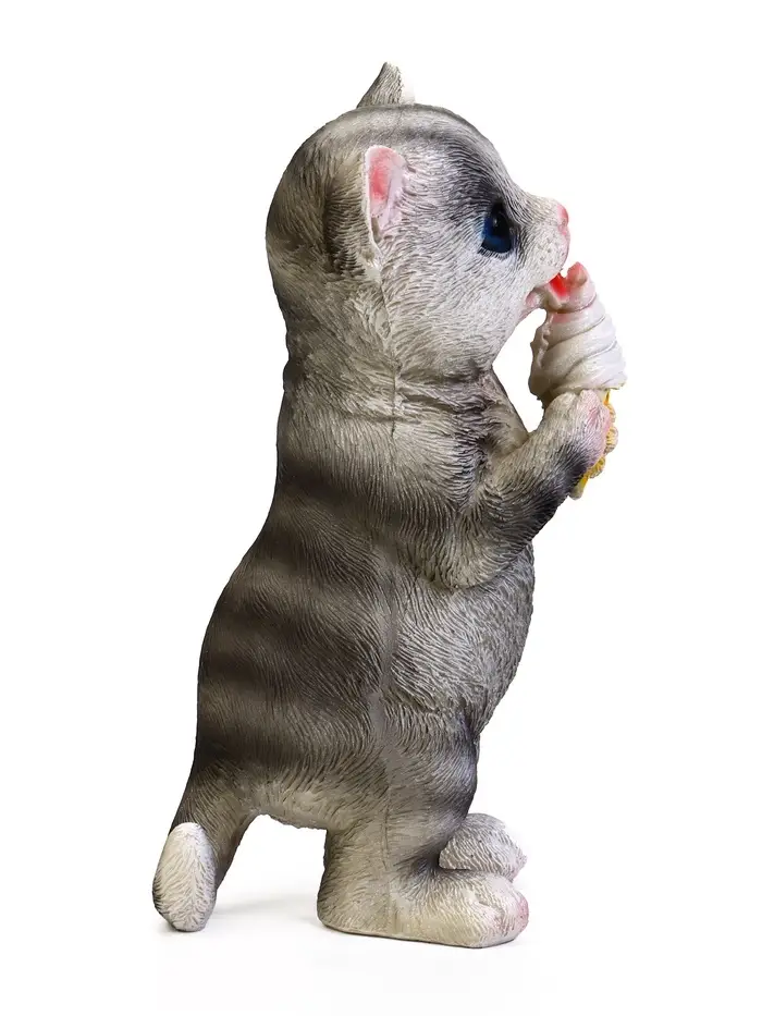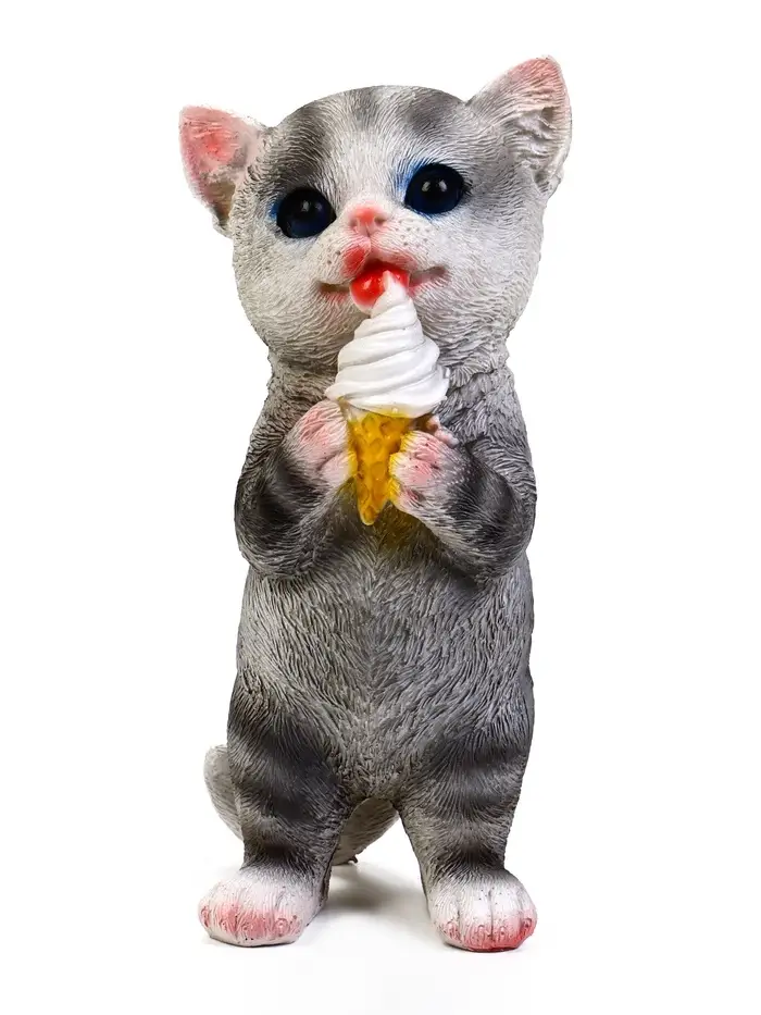 - Целостность композиции: Фигурка представляет собой законченную сцену с котёнком и мороженым. Она не требует дополнительных элементов для создания настроения.