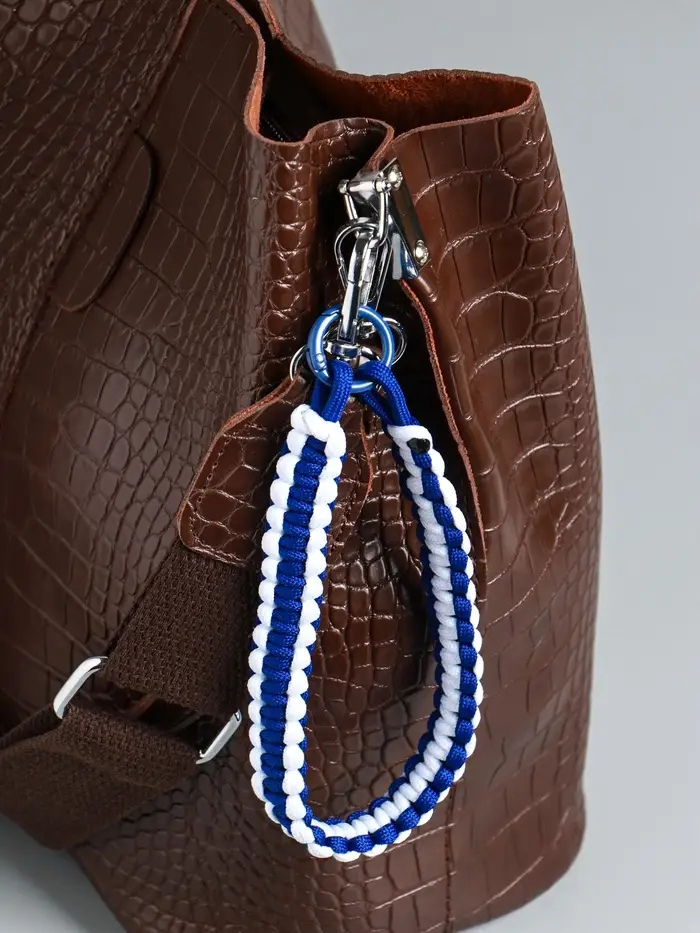 Брелок на карабине "Паракорд" шнур 0,5 см сине-белый 14,5х1,8х0,8 см