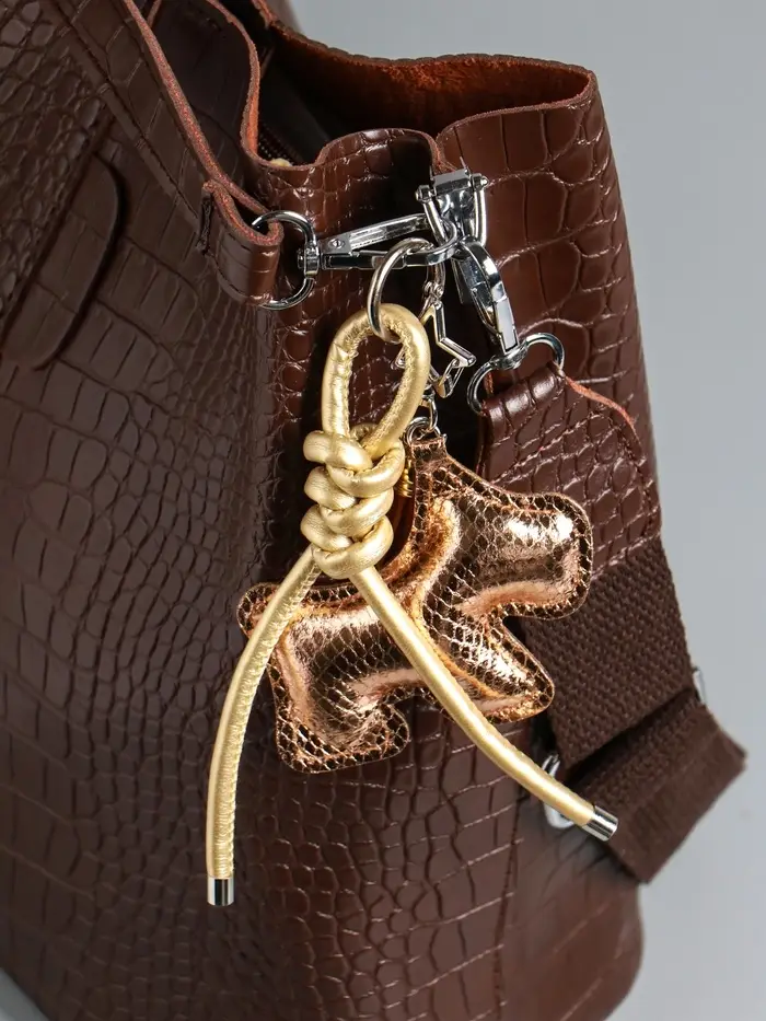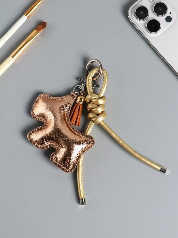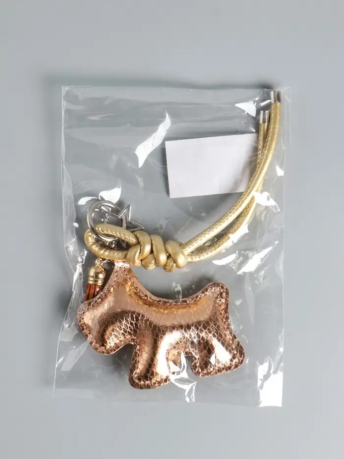Брелок на карабине кожзам "Терьер" с узлом, золото 14х8х1,2 см