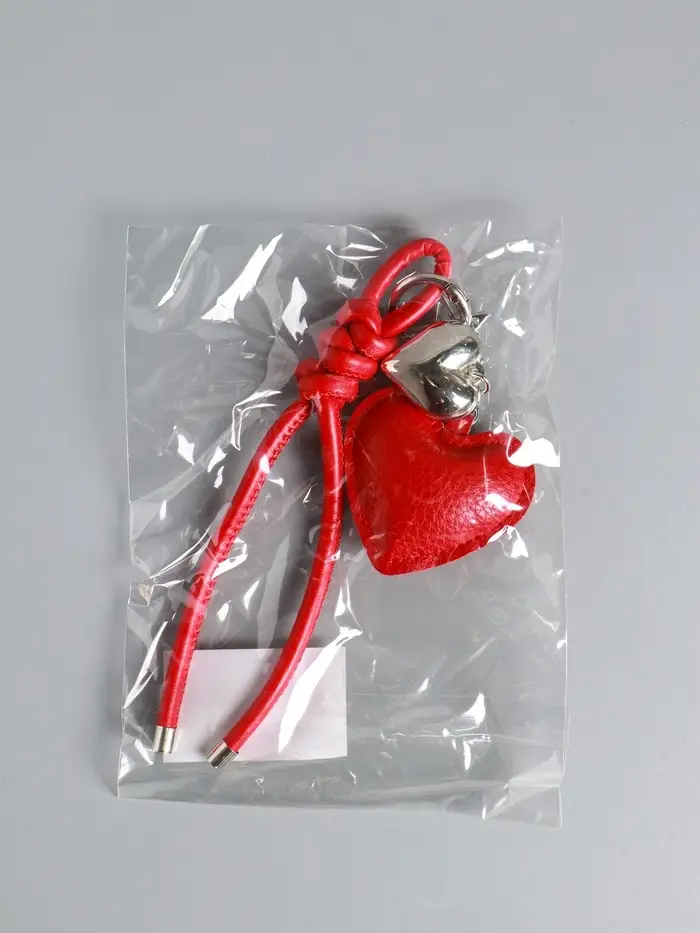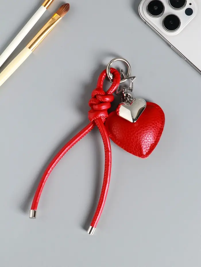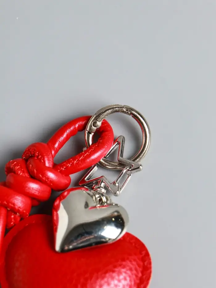Брелок на карабине кожзам "Сердце" с узлом, красный 21х5,5х1,5 см