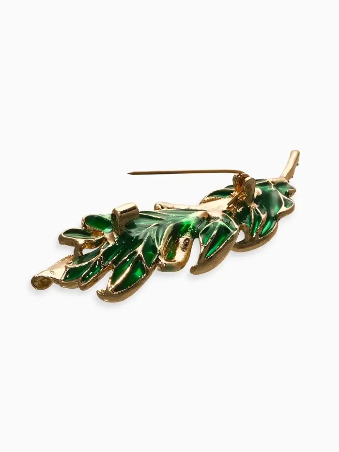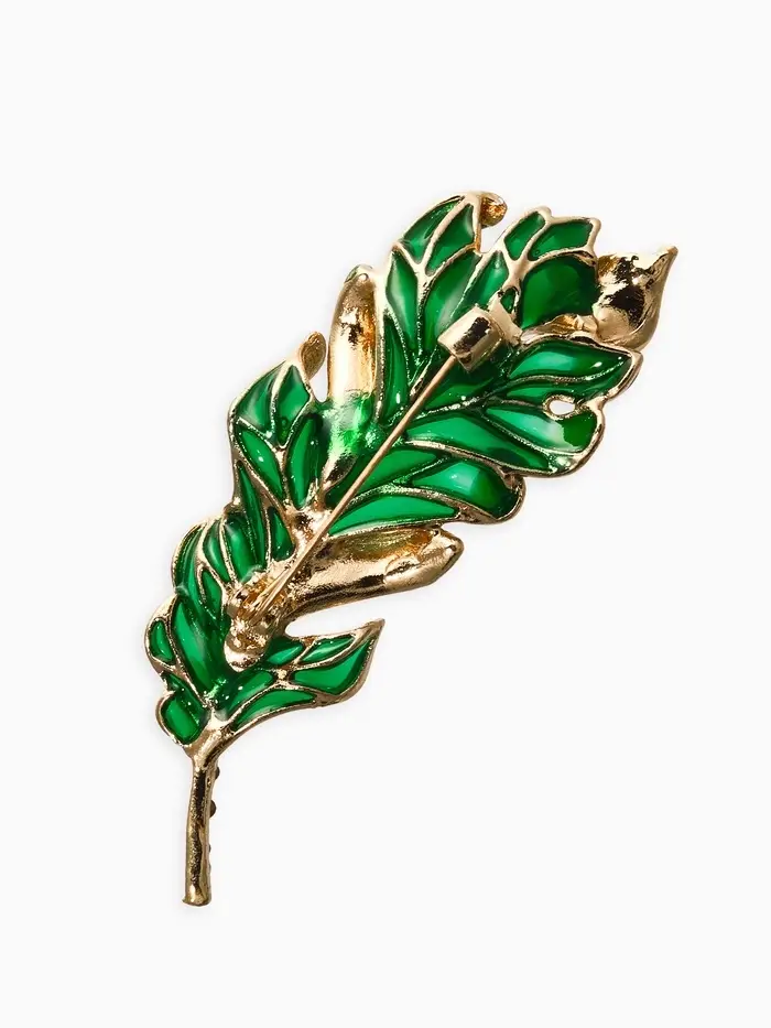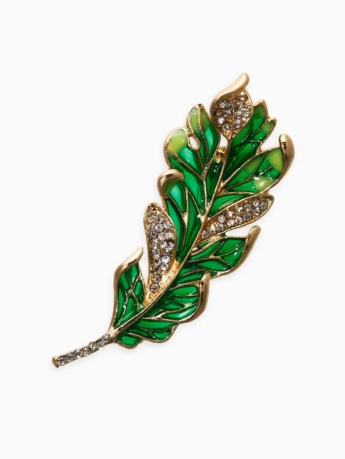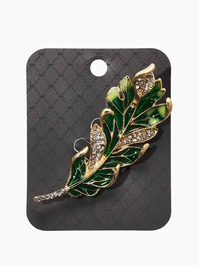 Брошь "Перо" прозрачное, цвет зелёно-белый в золоте