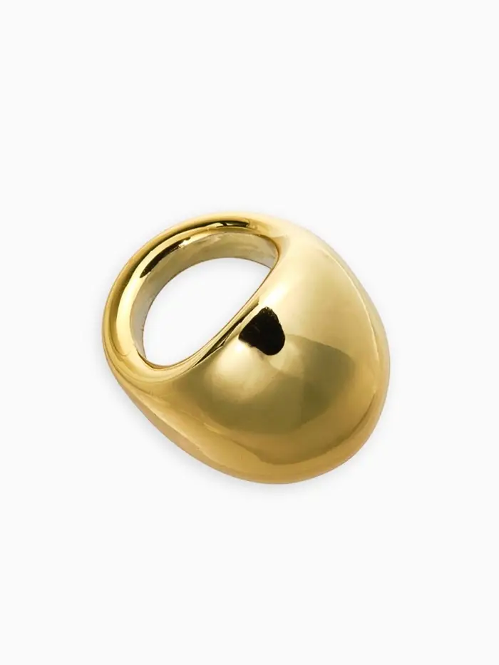 Создавайте гармоничный образ с помощью аккуратного и элегантного кольца, которое сразу привлечёт внимание. Гладкий круглый ободок с теплым золотистым оттенком придает ему особый шарм и современность.