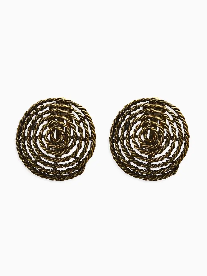 Клипсы "Винтаж" круг из веревки, цвет чернёное золото