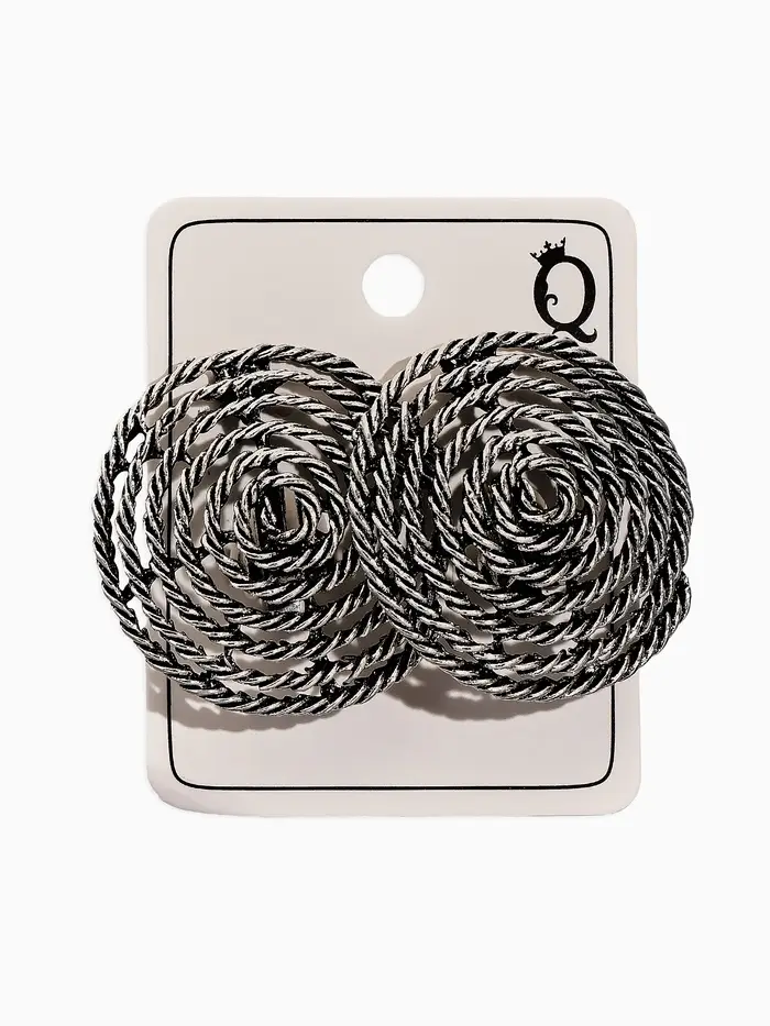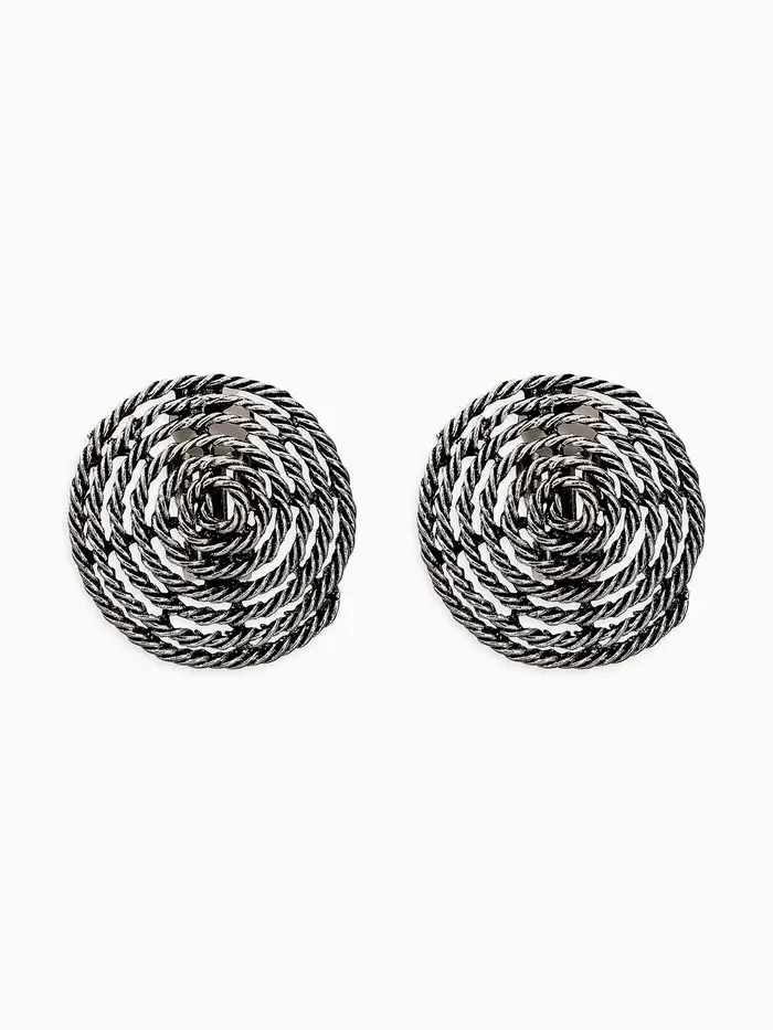 Клипсы "Винтаж" круг из веревки, цвет чернёное серебро