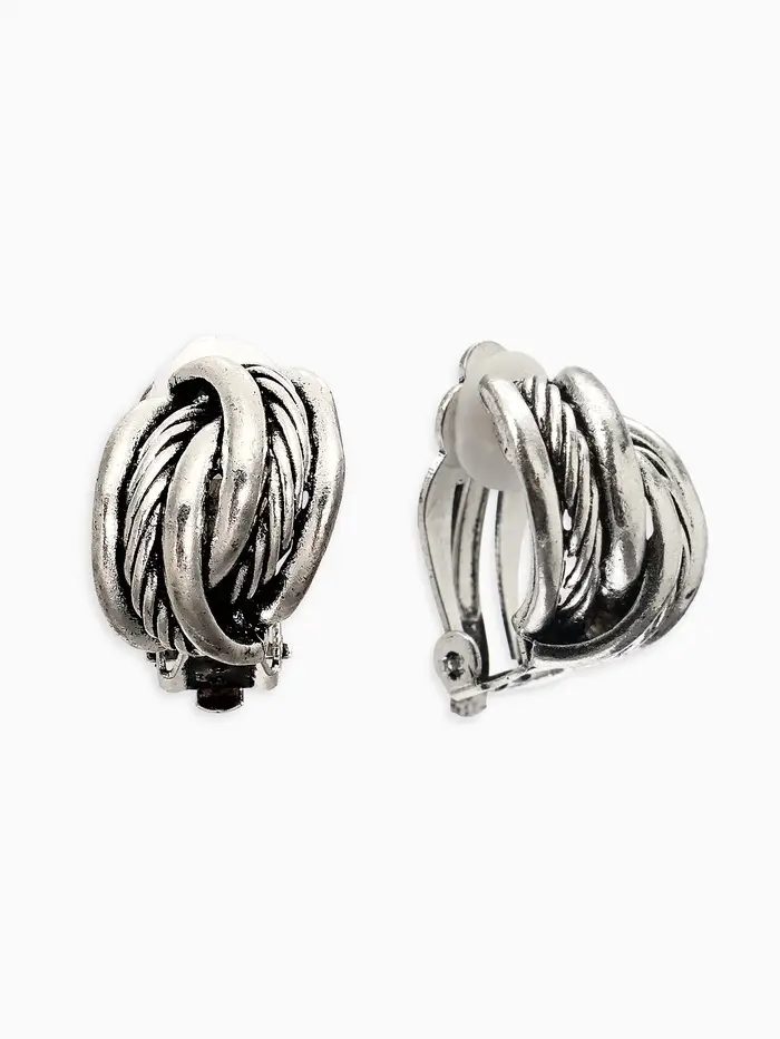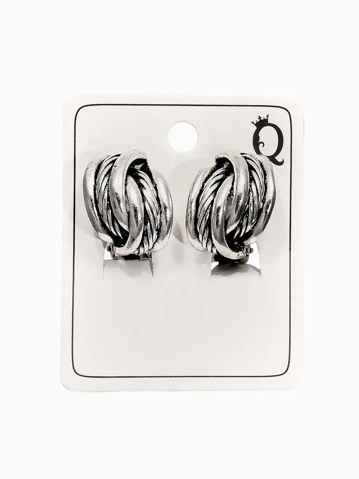 Серьги клипсы для ушей QF «Узел», цвет чернёное серебро