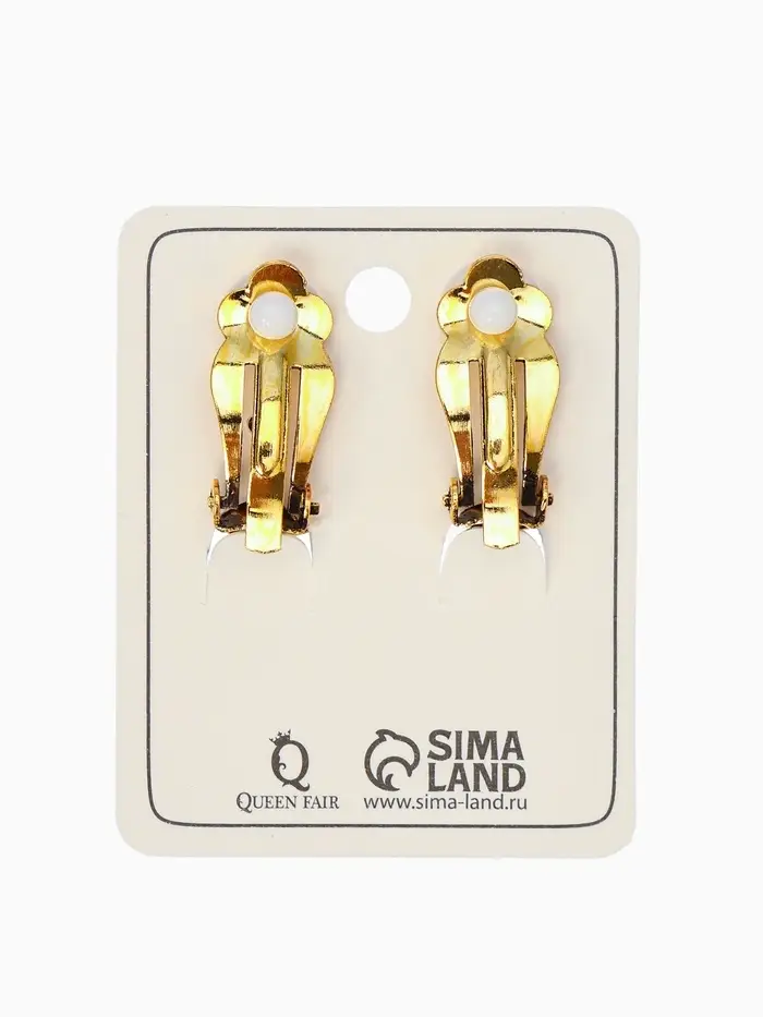 Серьги клипсы для ушей висячие со стразами QF «Ажур», белые в золоте