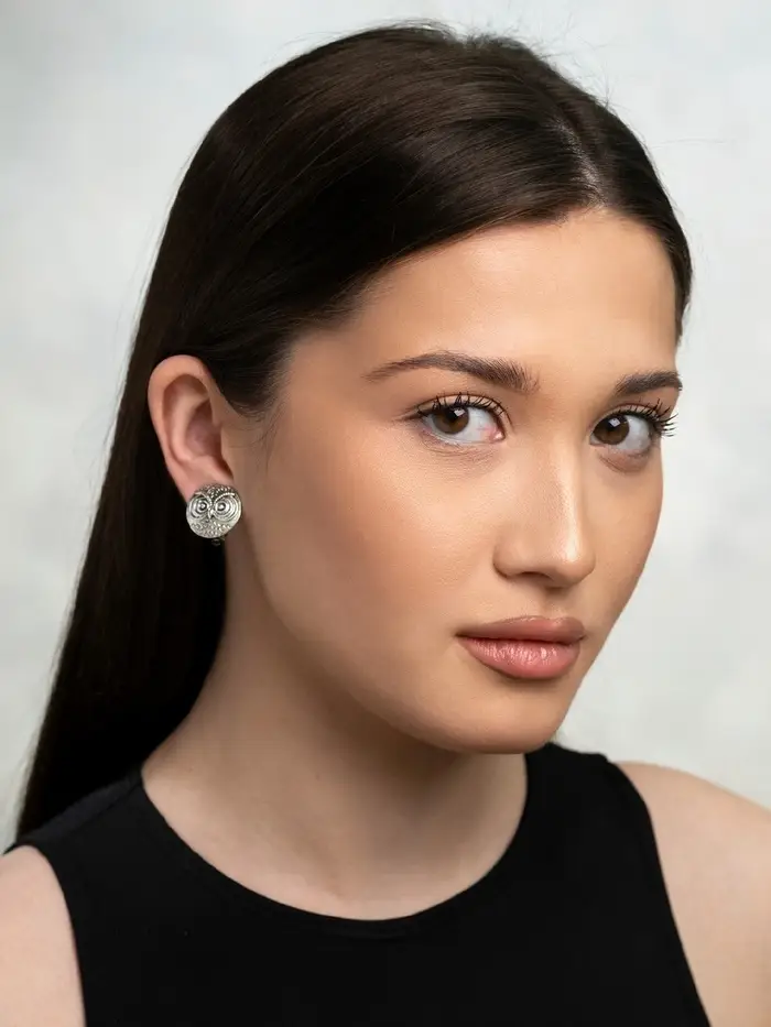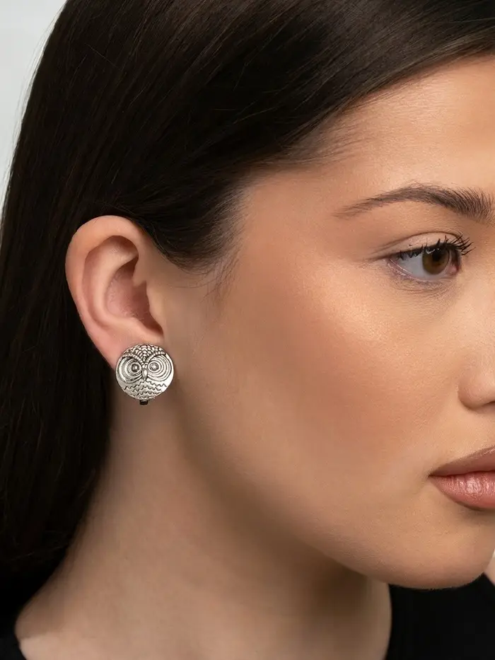 Поклонники оригинального дизайна оценят прекрасные серьги-клипсы «Сова» — прекрасное сочетание традиционного сюжета и современных технологий. Эти маленькие шедевры изготовлены из высококачественного металла, обработанного специальным способом, известным как чернение, придающим ему глубокий серый оттенок, близкий к цвету старого серебра.