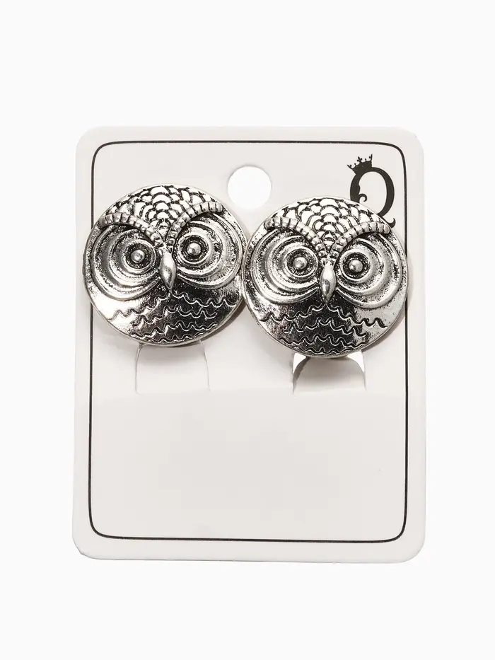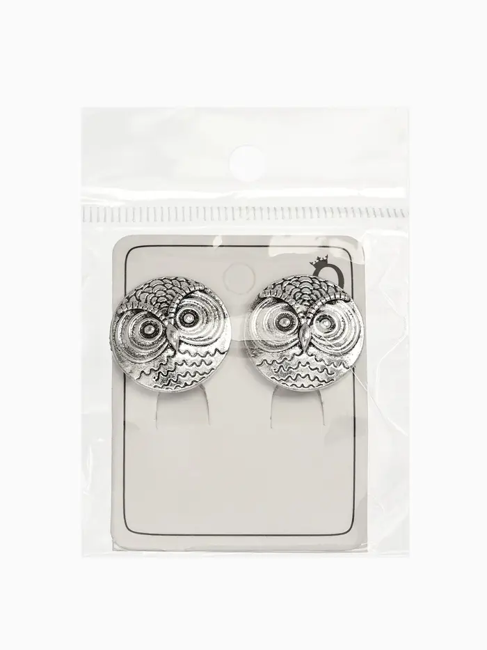 Серьги клипсы для ушей QF «Сова», цвет чернёное серебро