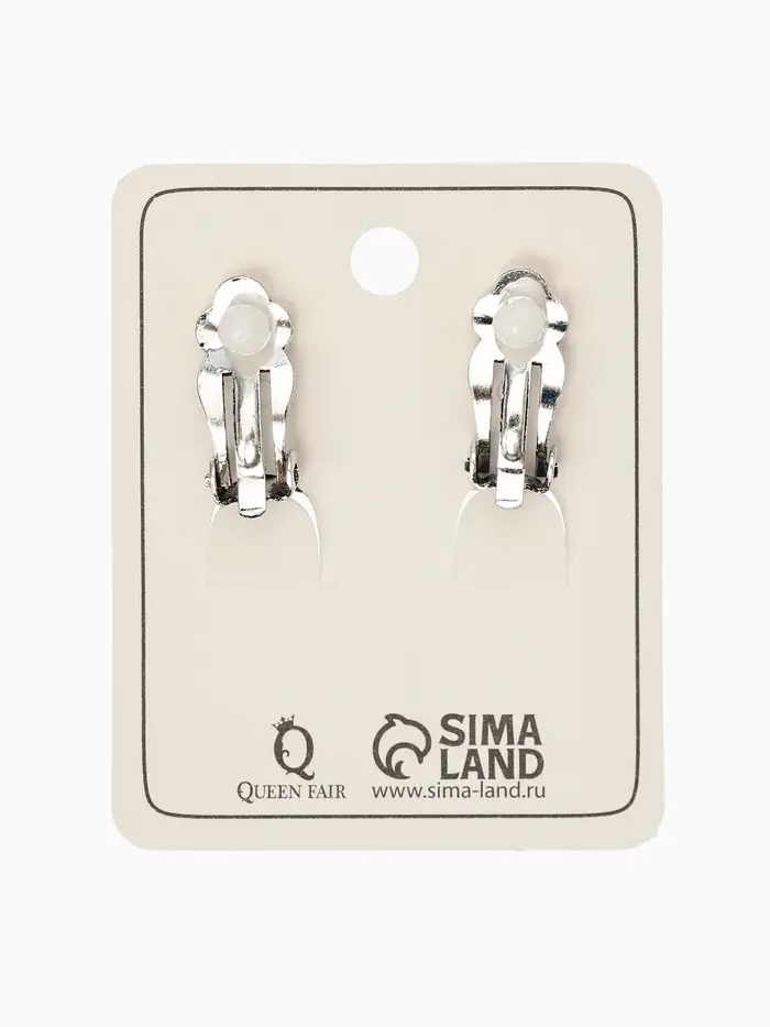 Серьги клипсы для ушей QF «Лёд», тройная сплошная, белые в серебре
