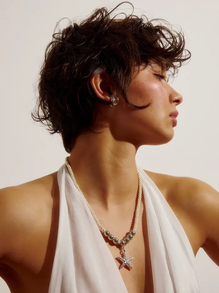 Для создания такого эффекта использован специальный метод обработки поверхности металла, придающий аксессуару характерную глубину и выразительность. Чёрное покрытие, нанесённое на серебристую основу, создает удивительно красивую игру света и тени, подчёркивая хрупкость и утончённость ракушек.