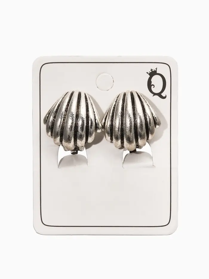 Серьги клипсы для ушей QF «Ракушка», цвет чернёное серебро