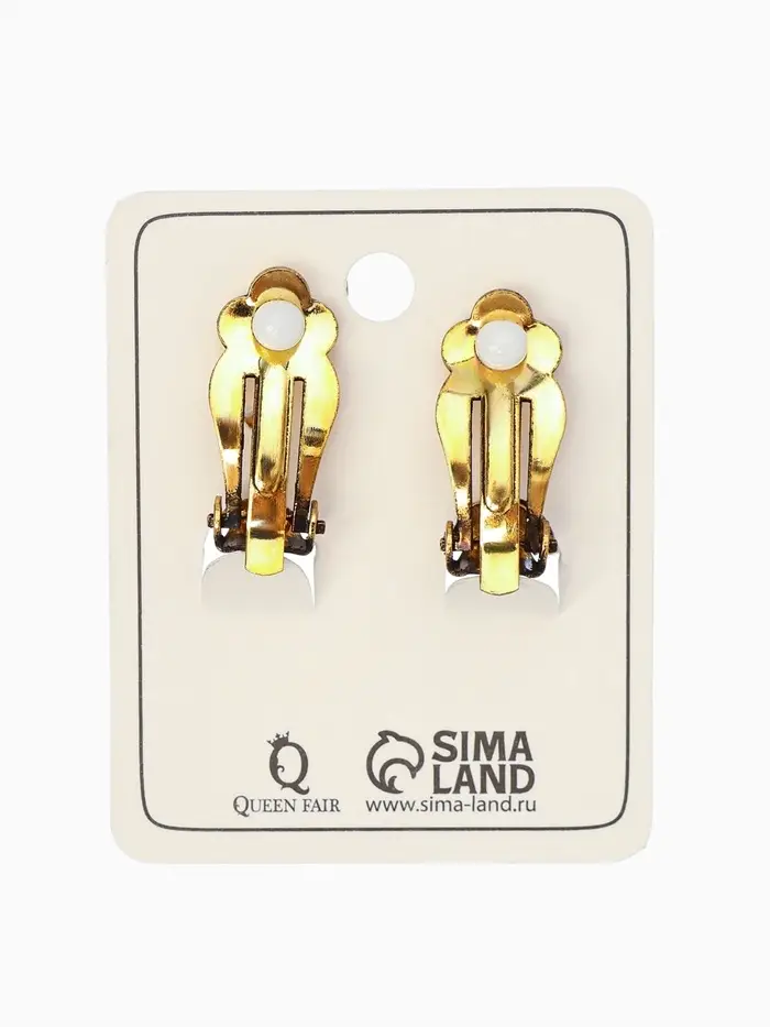 Серьги клипсы для ушей висячие со стразами QF «Ажур», белые в золоте