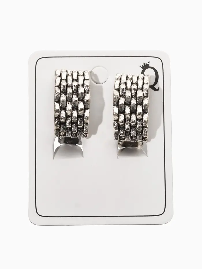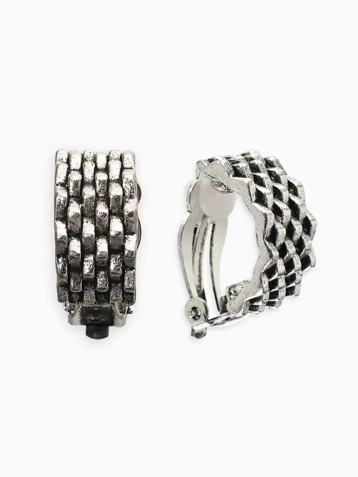 Серьги клипсы для ушей QF «Плетение», цвет чернёное серебро