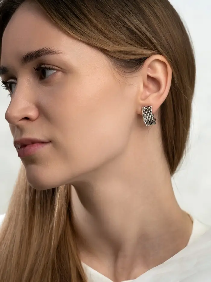 Вдохновитесь атмосферой покоя и роскоши морских пейзажей с серёжками-клипсами «Плетение» — оригинальным украшением, объединяющим современные тенденции и вековые традиции мастеров ювелирного дела. Уникальность этих серёжек заключается в точной имитации плетения морских сетей, выполненных в стиле «чернь», создающем эффект старых золотых реликвий, сохранивших следы времени.