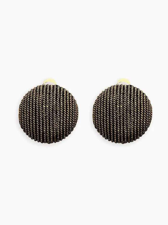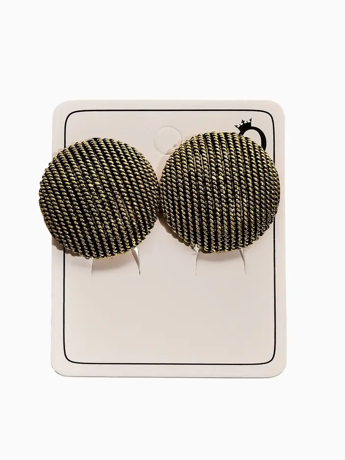 Клипсы "Винтаж" круг рубчик, цвет чернёное золото