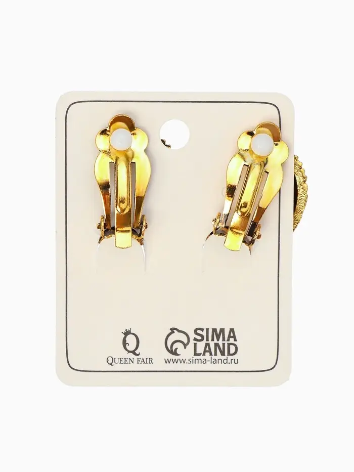 Серьги клипсы для ушей висячие со стразами QF «Ажур», белые в золоте
