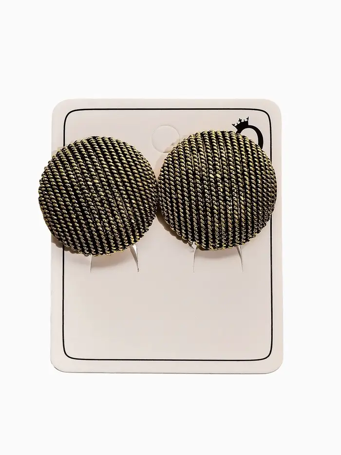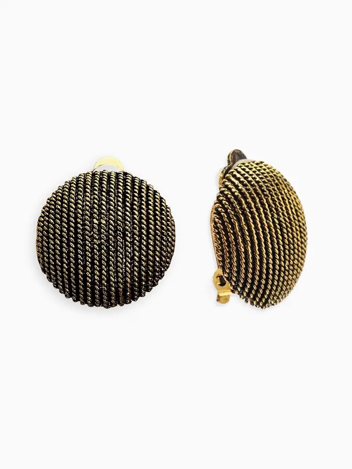 Серьги клипсы для ушей QF «Круг в рубчик», цвет чернёное золото