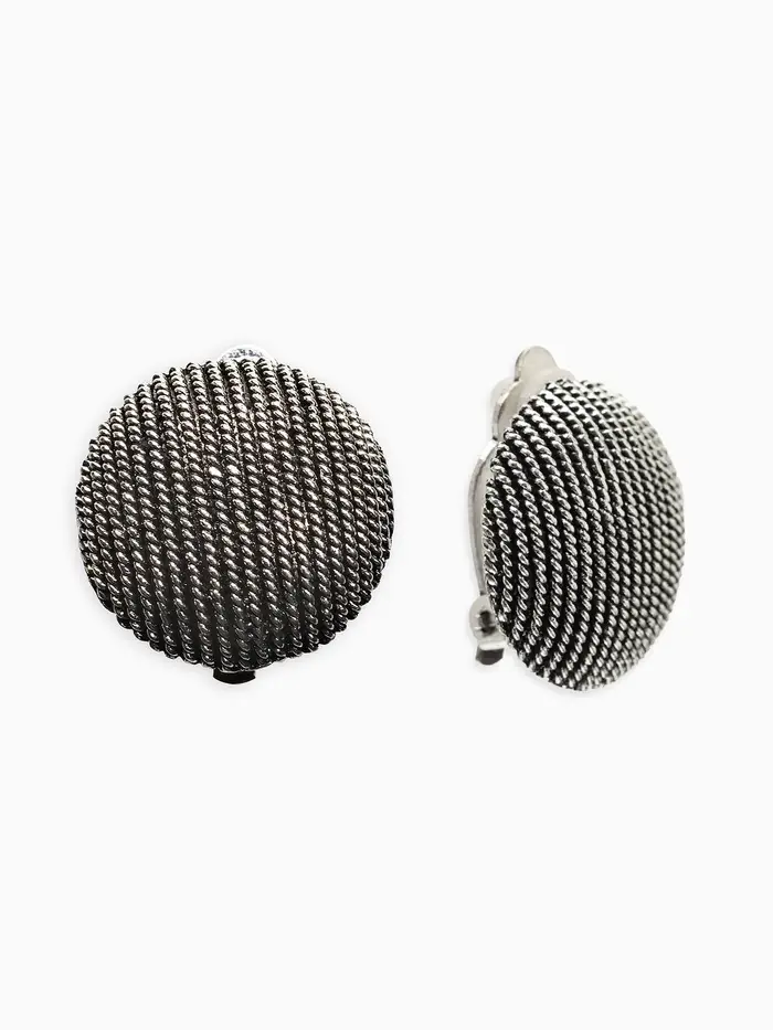 Создайте стильный акцент в вашем образе с помощью элегантных серёжек-клипс «Круг в рубчик» — простого, но выразительного дополнения, вдохновленного традиционной отделкой тканей. Выполненные из благородного металла, покрытого специфическим процессом чернения, эти серёжки приобретают глубокий серый оттенок с прохладным металлическим отсветом, визуально привлекая внимание к лицу и прическе.