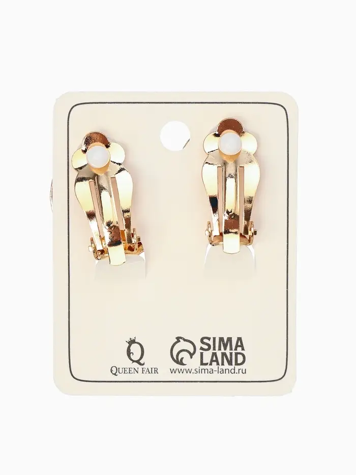 Серьги клипсы для ушей висячие со стразами QF «Ажур», белые в золоте