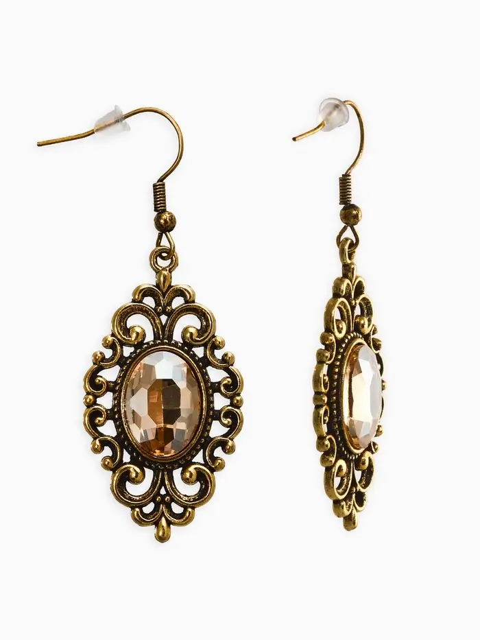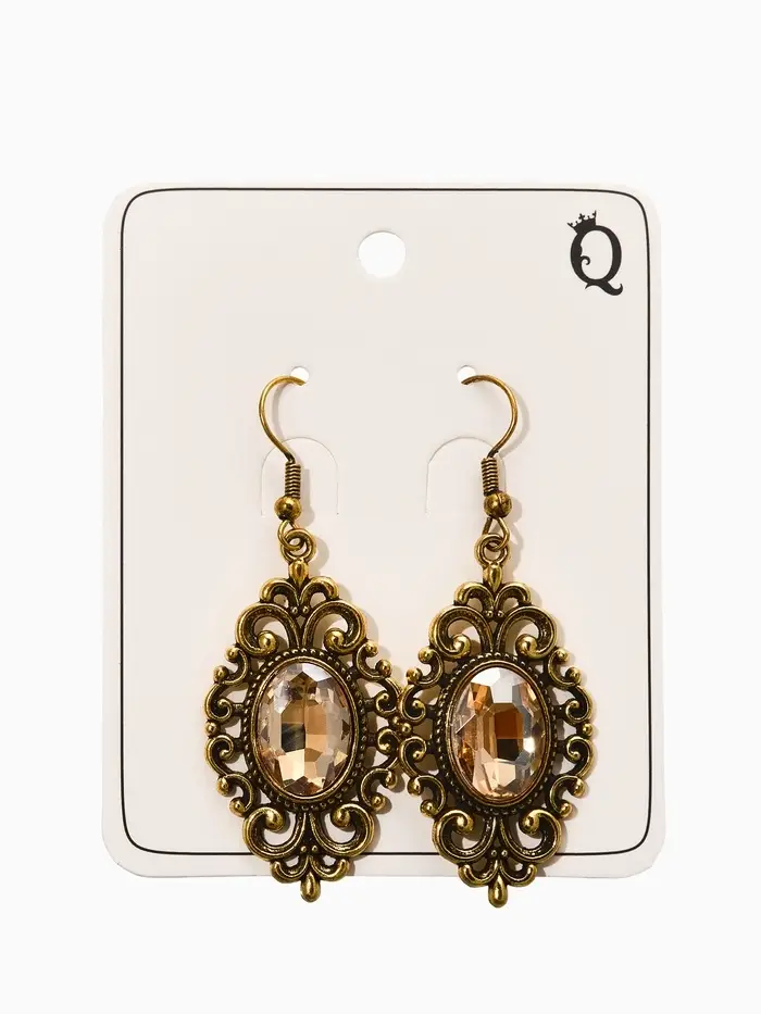 Серьги со стразми "Винтаж" овал ажурный, цвет золотой в чернёном золоте