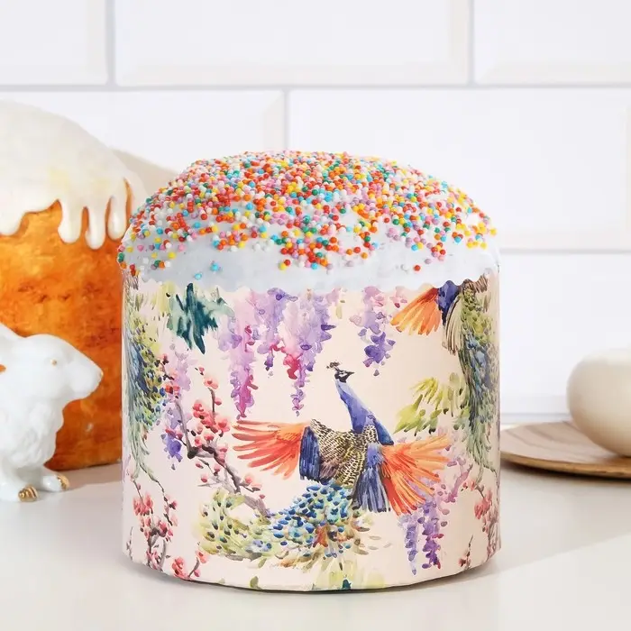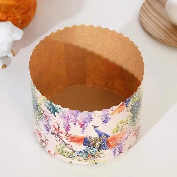 Форма бумажная для кулича "Павлины" 134 x 100 мм ( фасовка 1400 шт)