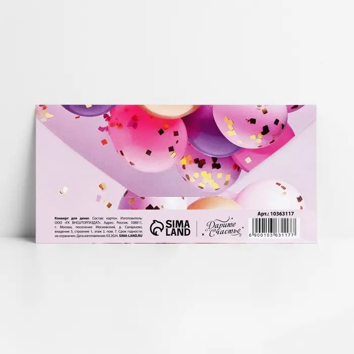 Конверт для денег «С Днём рождения!», шары на розовом, 16.5 х 8 см