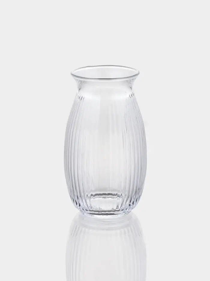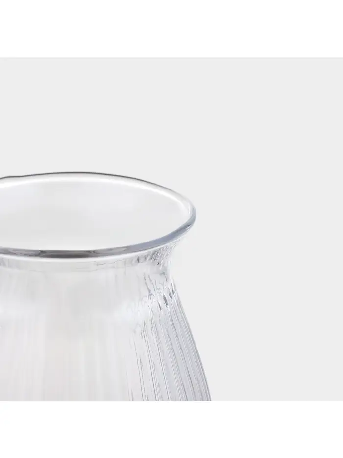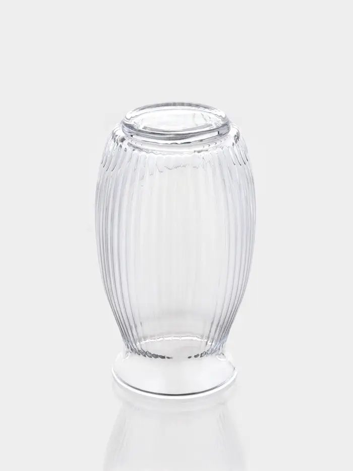 Стеклянный стакан с рельефной поверхностью и лаконичным дизайном. Его размеры 8×8×14 см делают его универсальным для воды, сока, холодного чая или молочных коктейлей — без излишеств, но с характером.