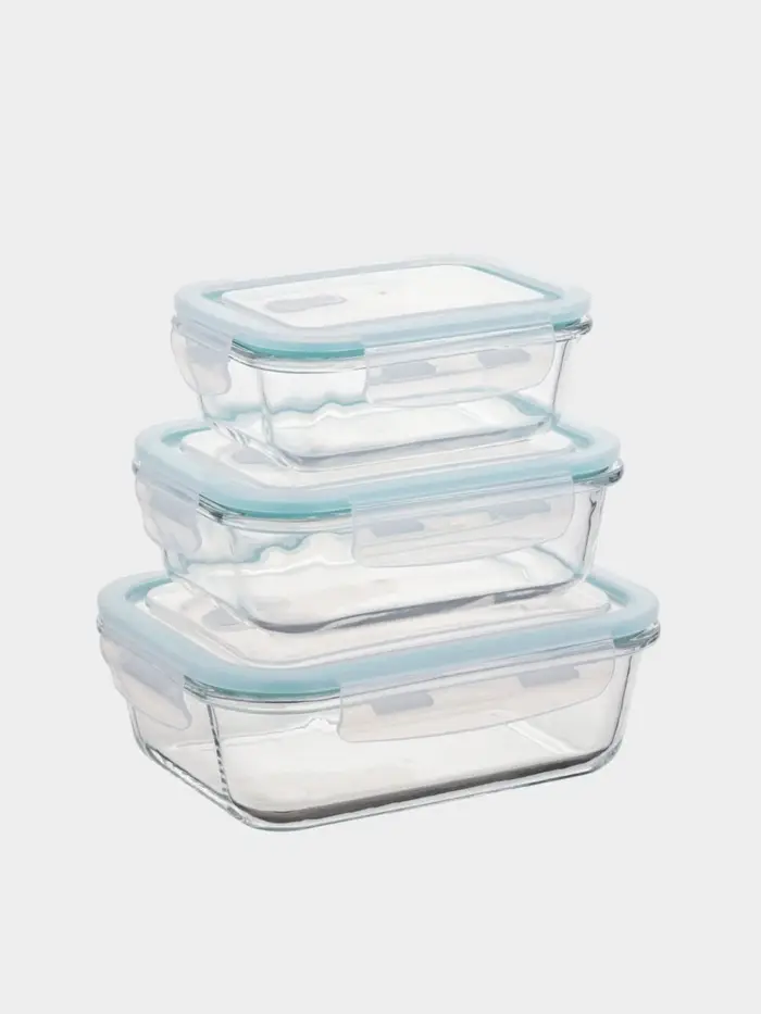 Набор стеклянных контейнеров с крышкой 3 шт, 410/690/1040 мл, прозрачная крышка