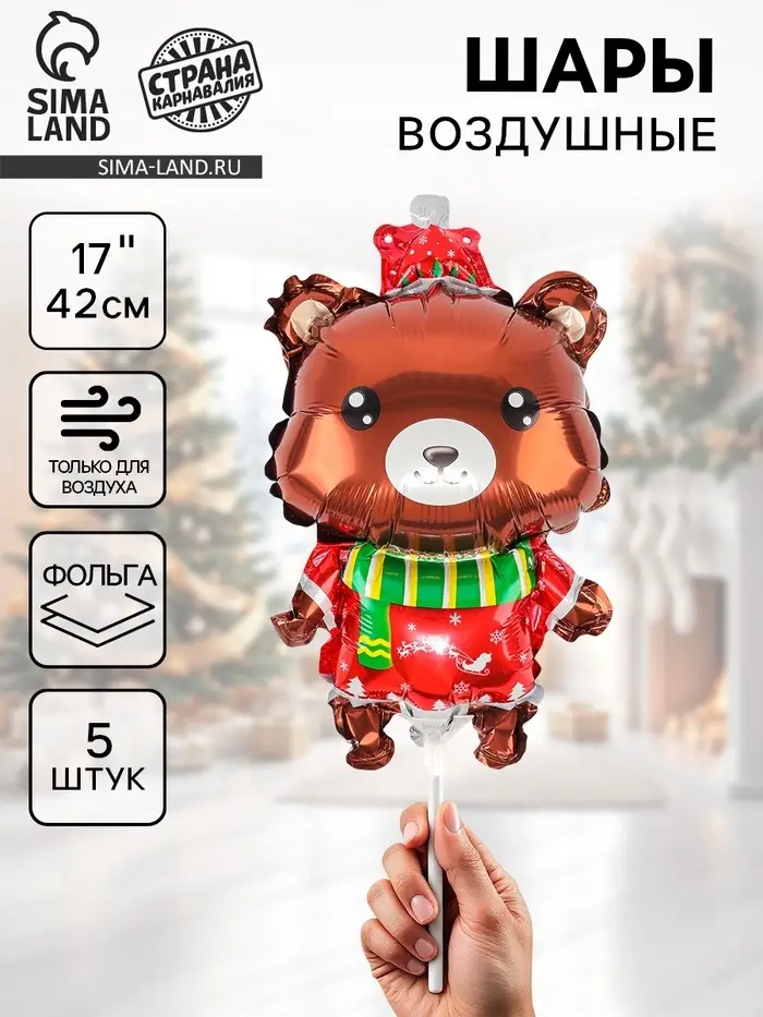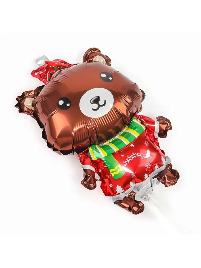 Воздушные шары фольгированные 17" «Новогодний мишка», 5 шт., для палочек