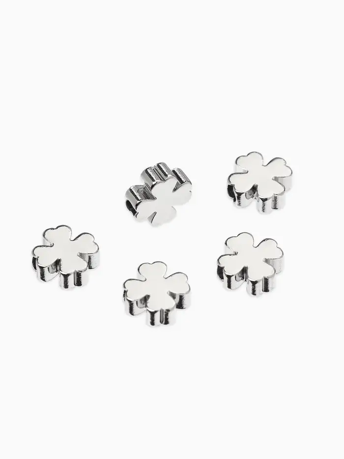 Бусина-разделитель родир. «Клевер», 7×7мм, d(вн.)=2мм, (набор 10 штук), медь, цвет серебро