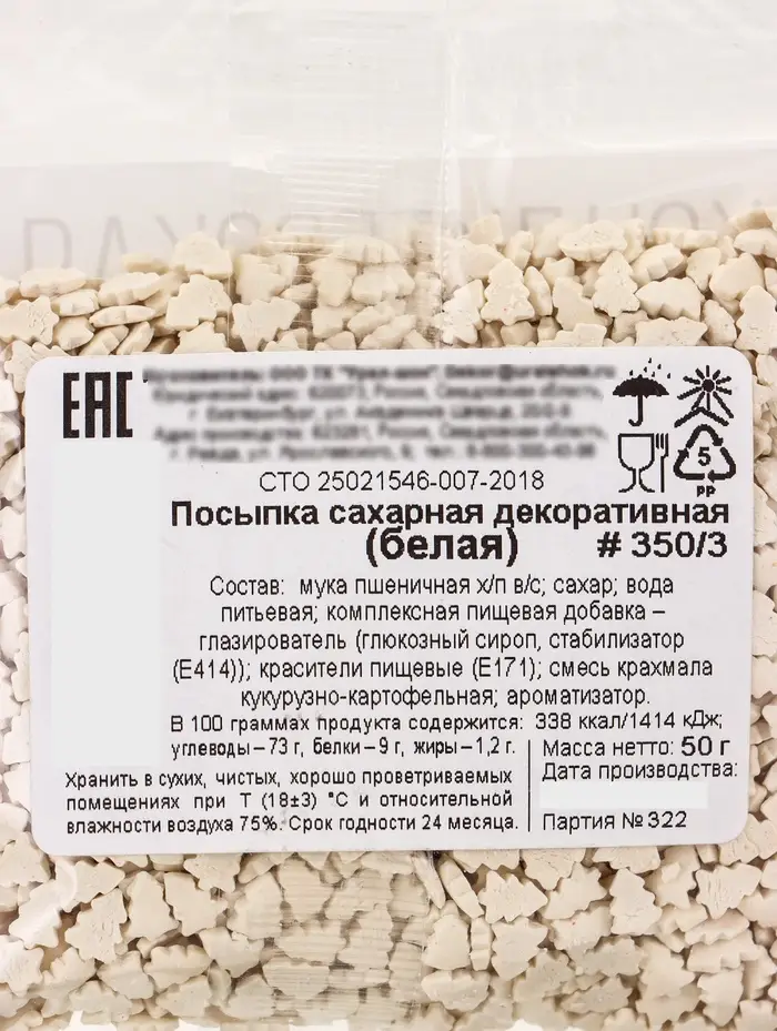 Посыпка кондитерская «Ёлочки», белые, 50 г