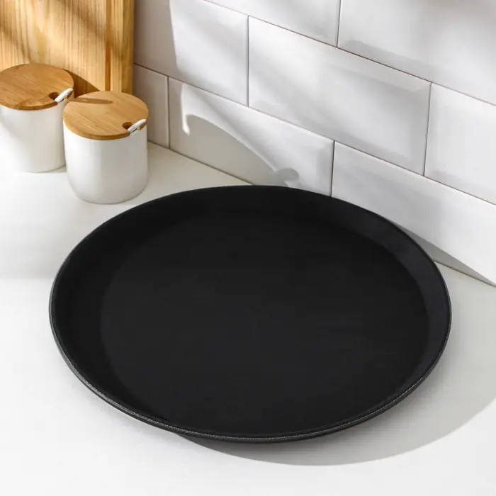Поднос прорезиненный круглый Hanna Knövell, d=35 см, чёрный