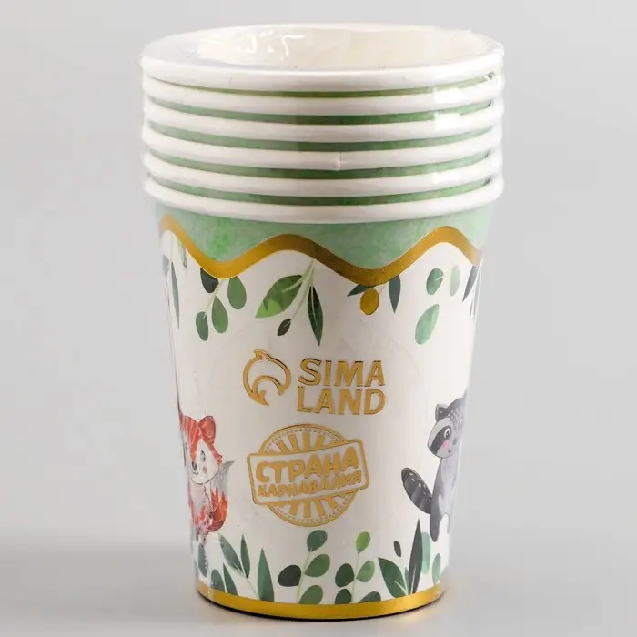 Стаканы бумажные «Зверята», 6 шт.