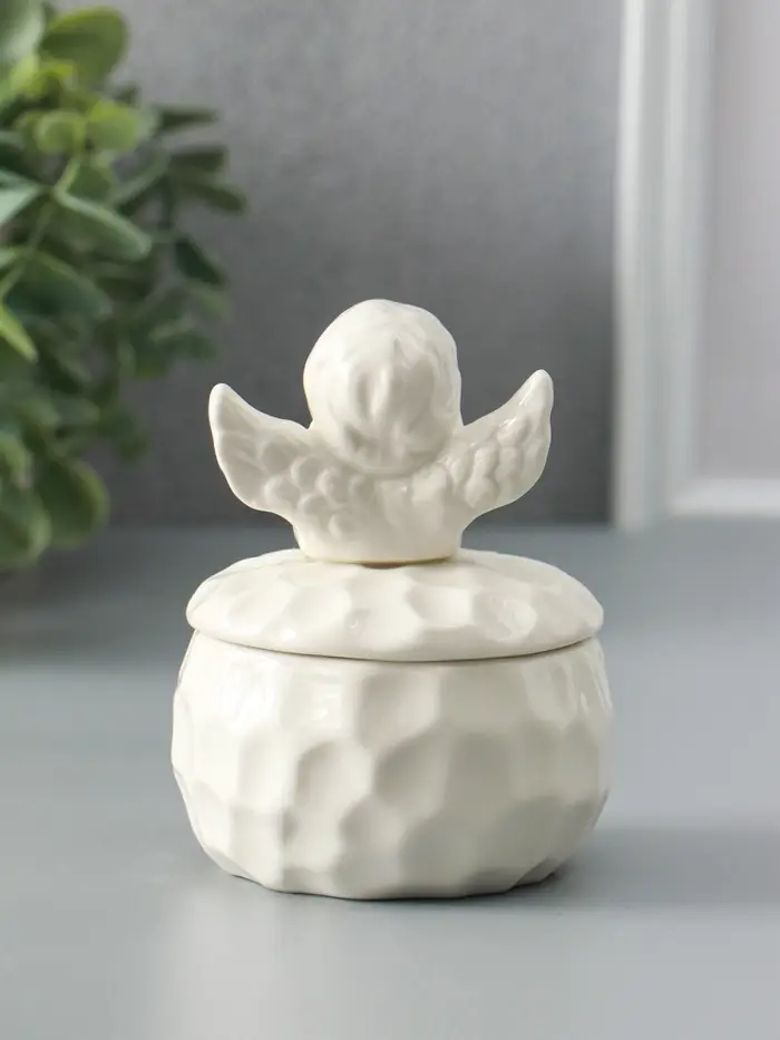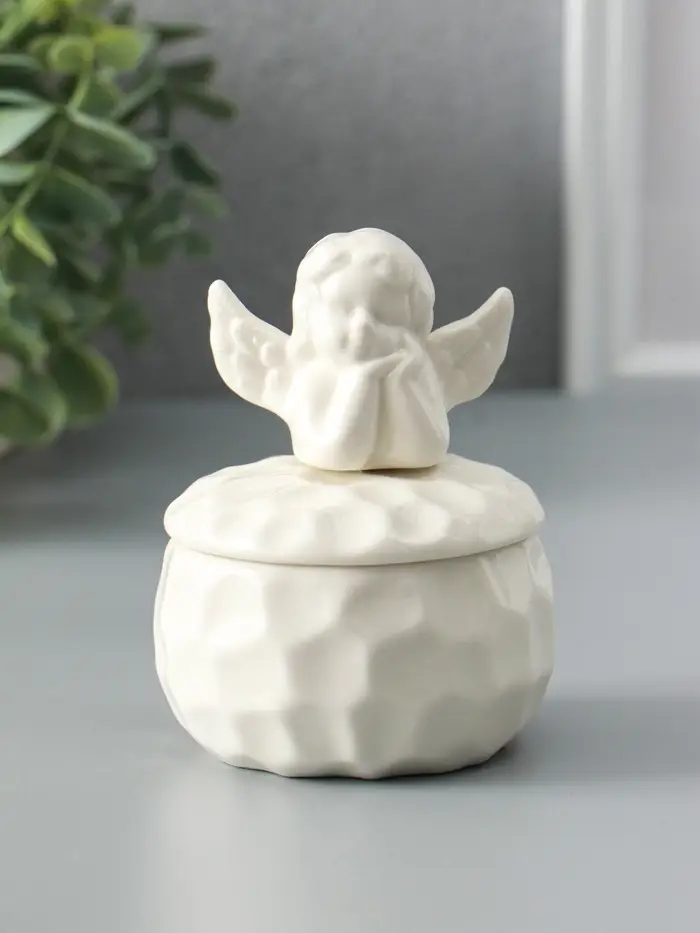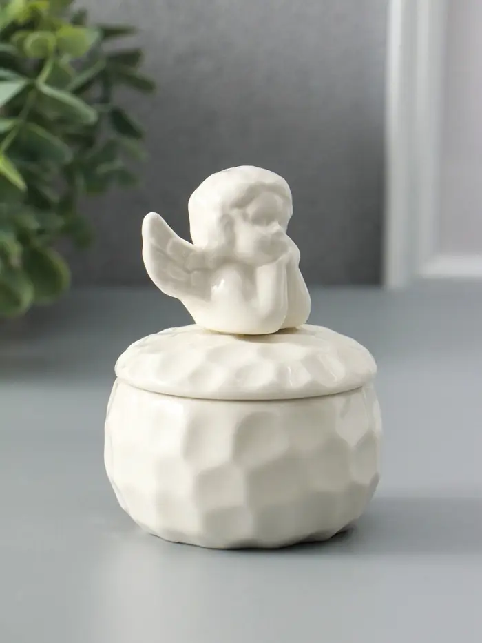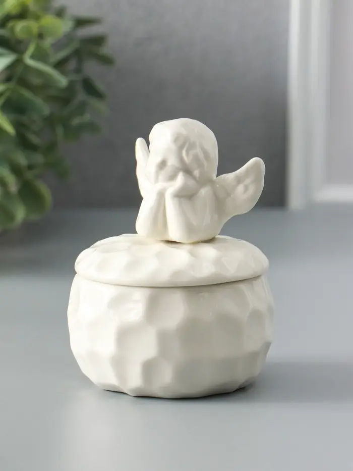 Шкатулка керамика "Ангелочек" белая 8х8х10,5 см