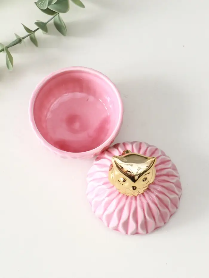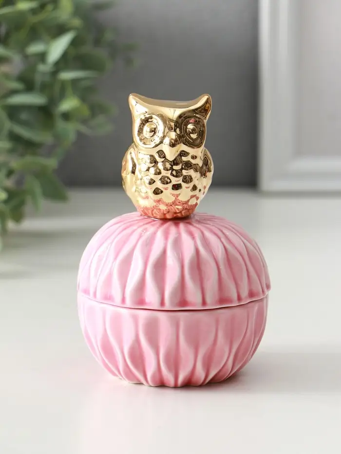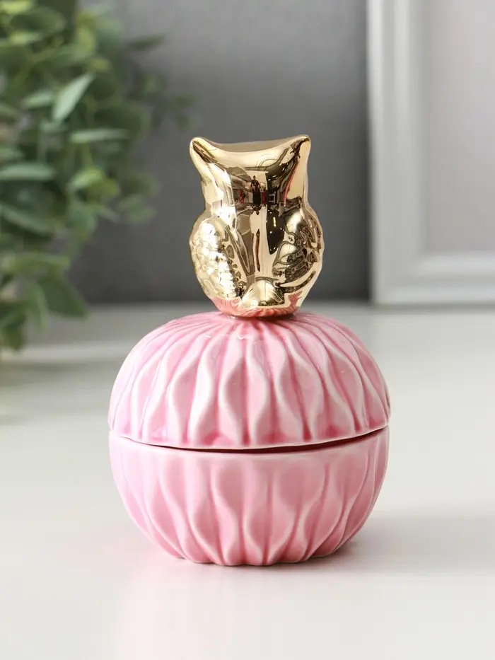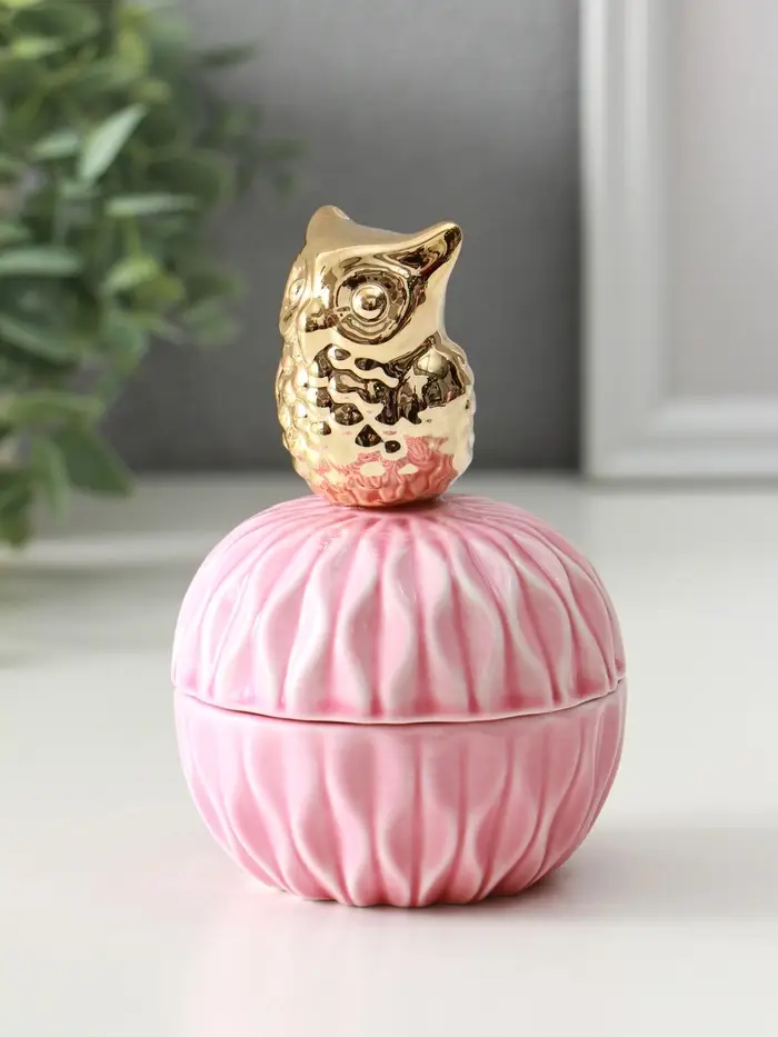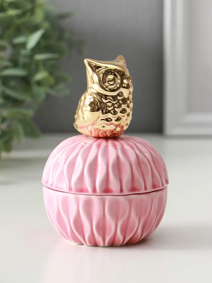 Шкатулка керамика "Золотая бабочка" розовая 8х8х9 см