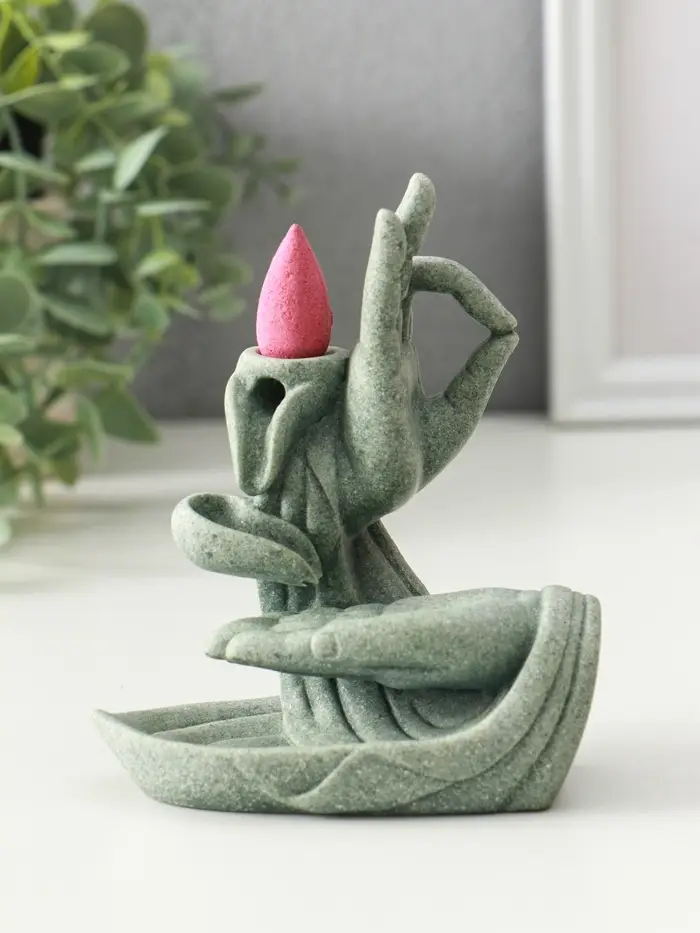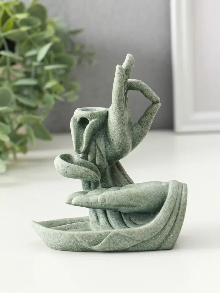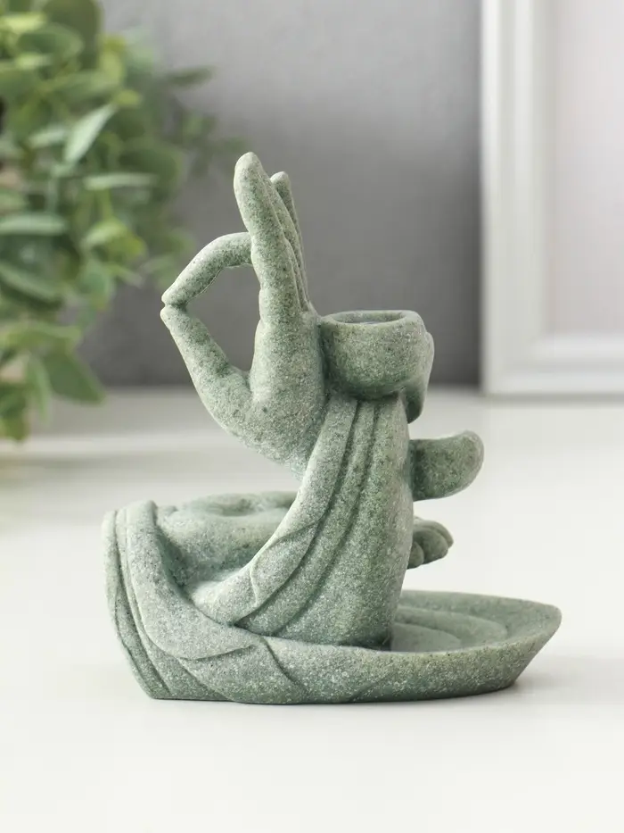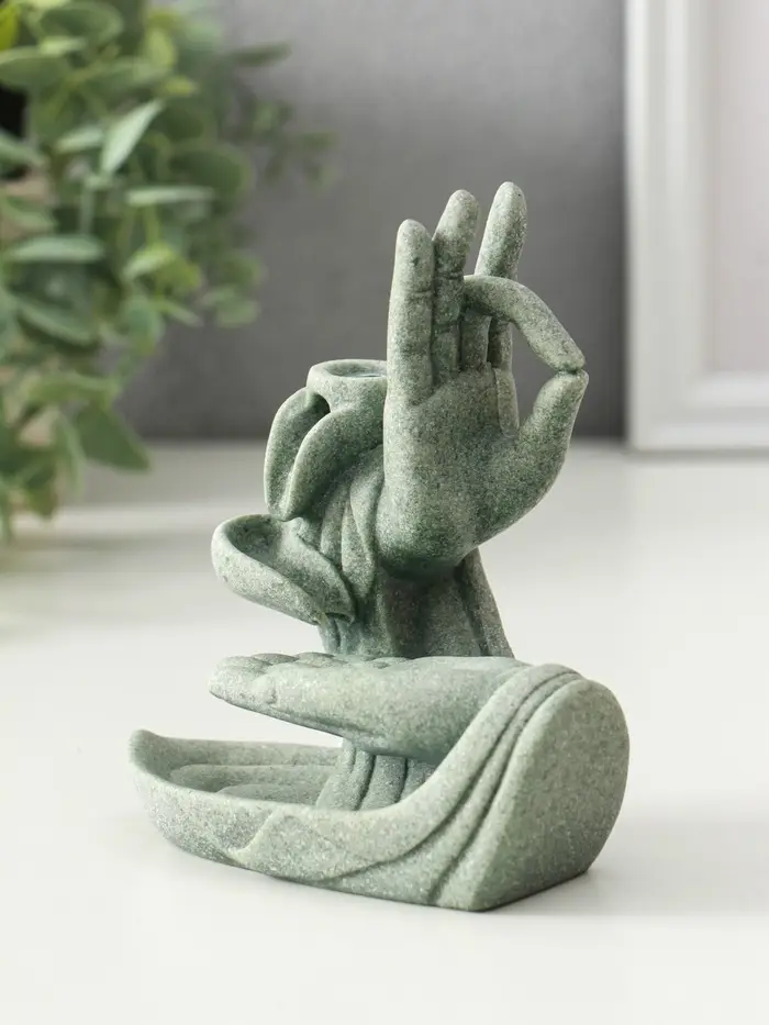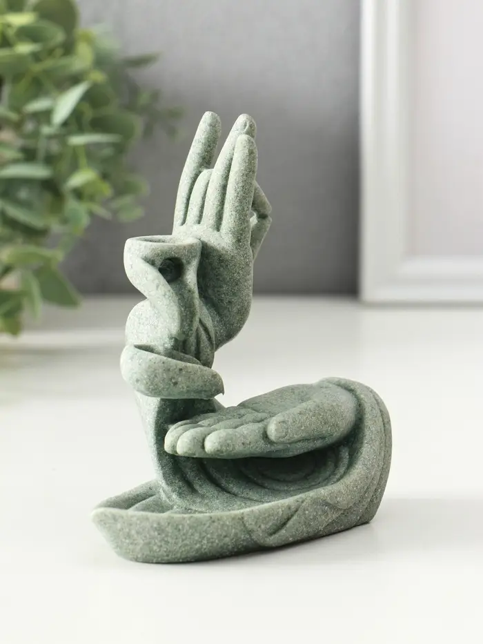 Подставка под благовония песчаник "Мудра Витарка - Колесо учения" 5,5х10,3х11,5 см